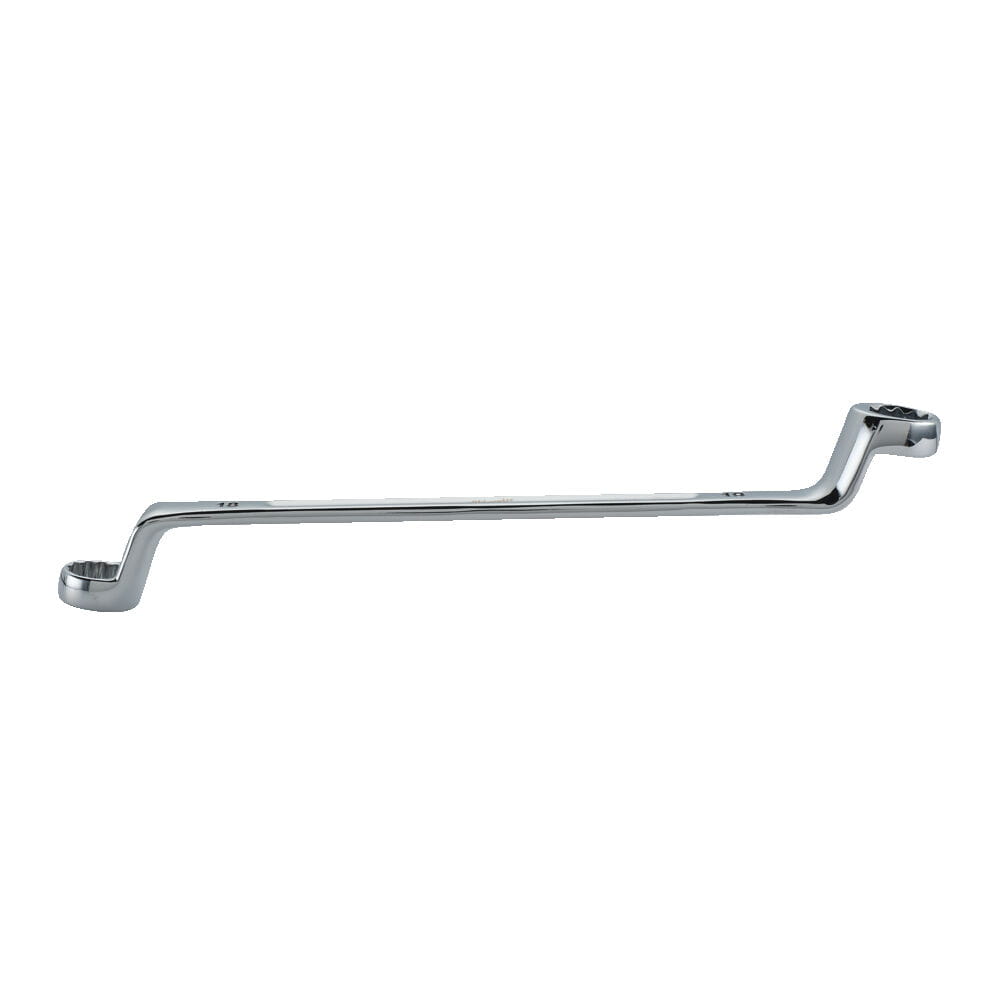 Klucz oczkowy podwójnie odsadzony 18x19 mm Milwaukee. Posiada uchwyt zagięty pod kątem 75° umożliwiający dotarcie do trudno dostępnych miejsc.