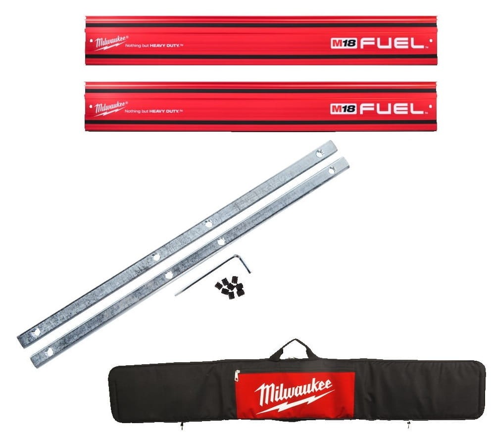 Zestaw dwóch prowadnic GR1400 dedykowanych do zagłębiarki lub dedykowanej pilarki tarczowej wraz z akcesoriami: torbą na prowadnice oraz prętach łączących Milwaukee