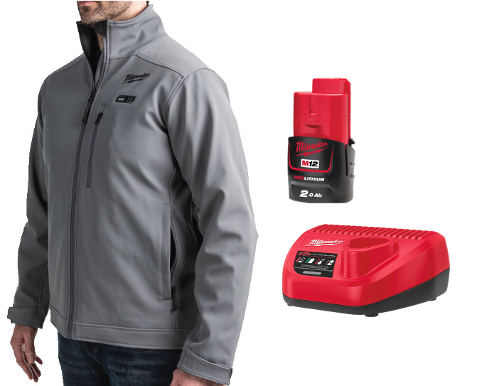 Nowa generacja kurtki podgrzewanej Milwaukee z wytrzymałego, a przy tym elastycznego materiału Toughshell, zapewniającego najwyższą trwałość i komfort użytkowania. Rozmiar M, kolor szary. Dostarczana z akumulatorem M12 2,0 Ah oraz ładowarką M12 C12C.