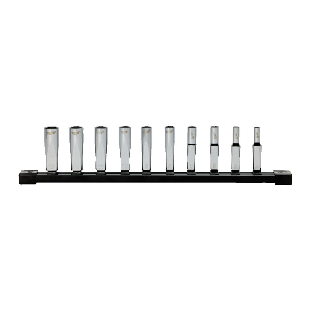 Zestaw nasadek chromowanych długich 1/4" metrycznych 10 szt. Milwaukee