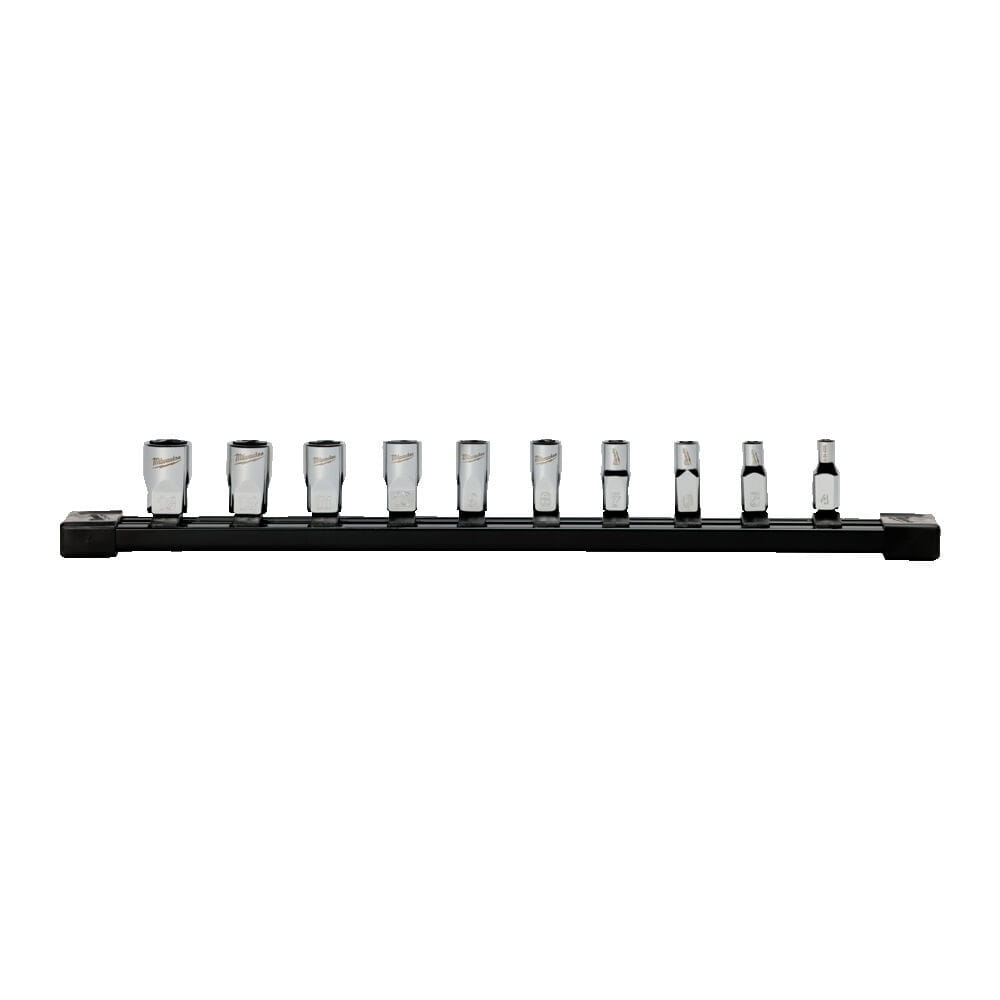 Zestaw nasadek chromowanych krótkich 1/4" metrycznych 10 szt. Milwaukee
