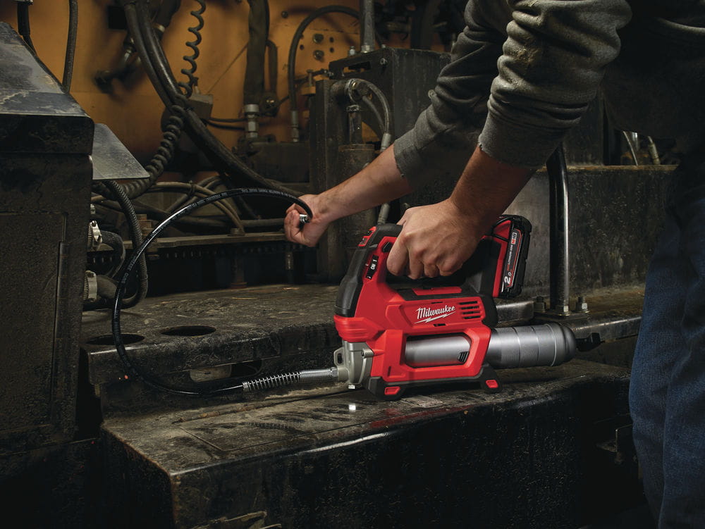 1 x Smarownica 690bar Milwaukee M18 GG-0 (wersja w fabrycznym kartonie, dostarczana z końcówką kątową oraz paskiem na ramię)